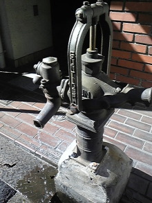 懐かしいですね~ マニュアル式井戸水くみ上げポンプ(私の命名ですが)! 小・中学生の頃、夏休みや冬休みに帰省した田舎でよく使ってました・・